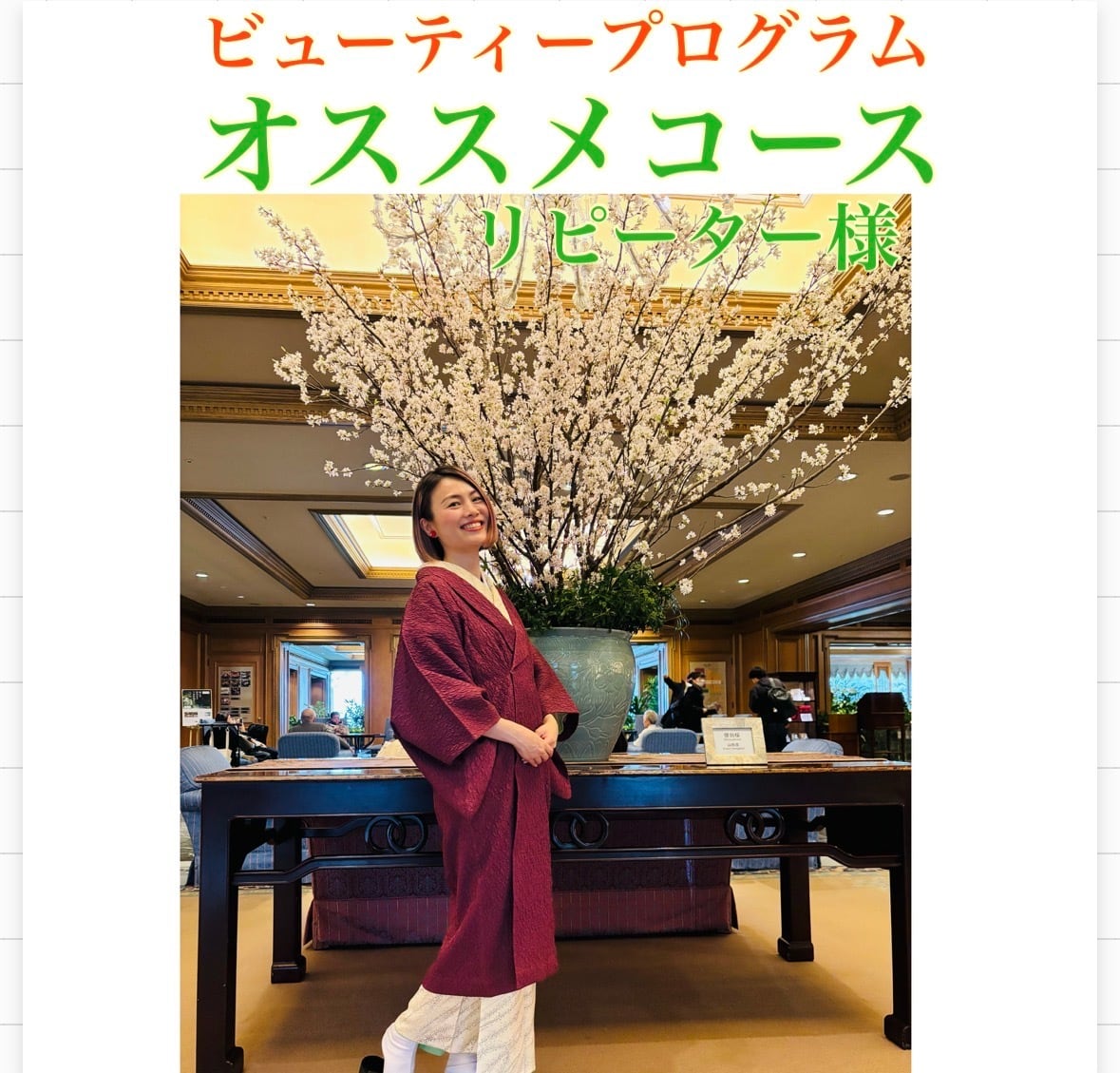 ビューティープログラムのオススメコースの決済ページです!(リピーター様3000円引き)